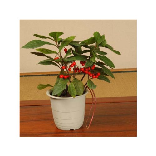 苗:十両(やぶこうじ)撮影日 11月樹高:約16cm、10号ポット入り 晩秋に鮮紅色に熟す果実は冬の間も落ちずに残っているため、縁起が良いことで正月の飾りに使わます。育て方説明書がご入用の方は、備考欄にお書き下さい。 詳しい手入れ方法を知りたい方は、メール等