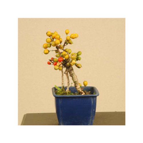 ツルウメモドキ。落葉樹。春に花が咲き、そこに実をつけます。黄色の実がはじけて、中の赤い種子を見ることができます。撮影日 10月樹高:約13cm、8cmポット入り