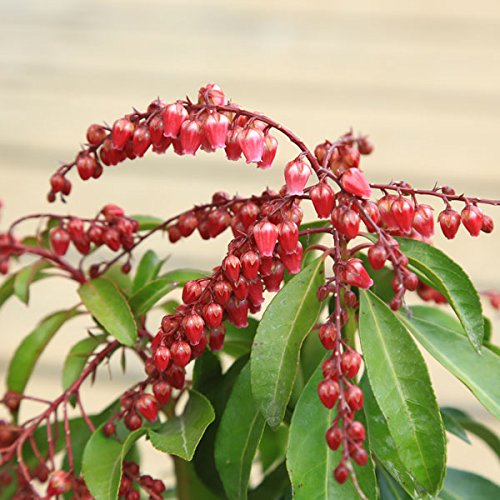 • 常緑樹。あせびの中で最も濃い紅花品です。春にスズランのような愛らしいお花が楽しめます。