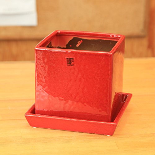 洋風モダン鉢 ムードスクエア 15.5cm (レッド)