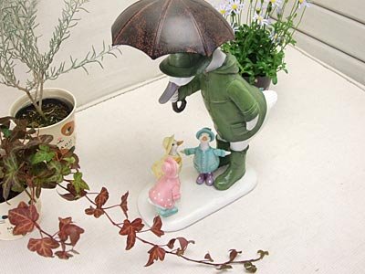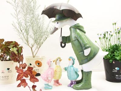 レインコートを着たアヒルの親子が、とっても可愛いです 商品詳細 ■サイズ 本体:(約) 幅24.5cm×奥行き16cm×高さ34cm ■材質 ポリレジン ■商品特性 手作り製品のため、サイズや表情に違いがある場合があります。