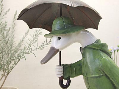 商品説明 傘を持ってアヒルのおかあさんが、お出迎え
