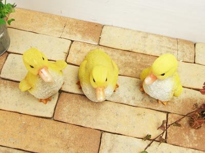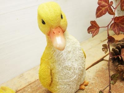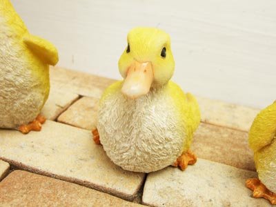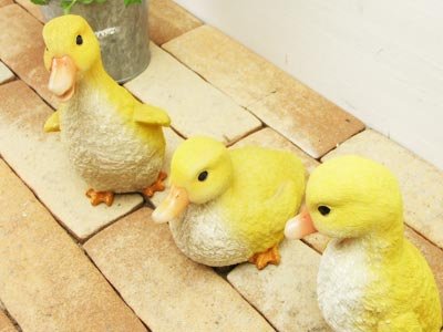 3羽のアヒルの子供達 くりくりな瞳を、じ~っと見つめちゃう 商品詳細 ■サイズ 本体:(約) 幅6cm×奥行き13cm×高さ7cm ■材質 ポリレジン ■商品特性 手作り製品のため、サイズや表情に違いがある場合があります。 画像に一緒に写っている小物やグリーンなど商品以外の物は含まれません。