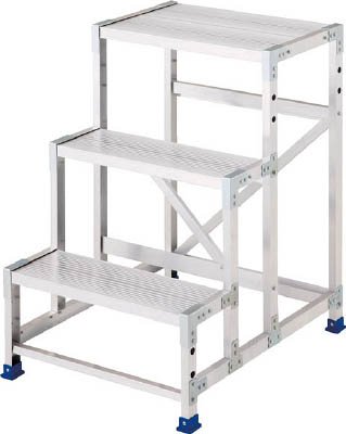 - ●最大使用質量(kg):150●天板高さ(m):0.9●天板寸法(mm):600×400●段数:3●踏ざん踏面幅(mm):200(2段以上のもの)●設置寸法(mm)間口×奥行:620×820●組立式●別売りオプションに、手摺(2段以上)・キャスター・アジャスター(35mm)があります。