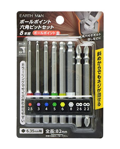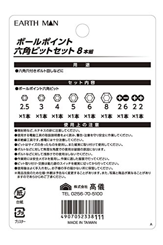 高儀 EARTH MAN 六角軸ボールポイントビットセット8本組