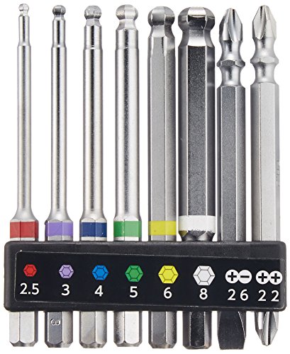 - セット内容:ボールポイント六角ビット2.5mm/3mm/4mm/5mm/6mm/8mm/+No.2×-6/+No.2