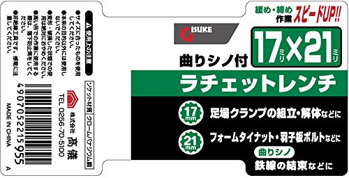 高儀 GISUKE ラチェットレンチ 曲りシノ付 17×21mm