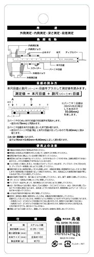 ●本尺とバーニヤ(副尺)の目盛りを組み合わせ値を読み取る●収納ケース付外側・ 内側・ 段差・ 深さ測定サイズ:H255×W90×D20(mm)重量:103(g)