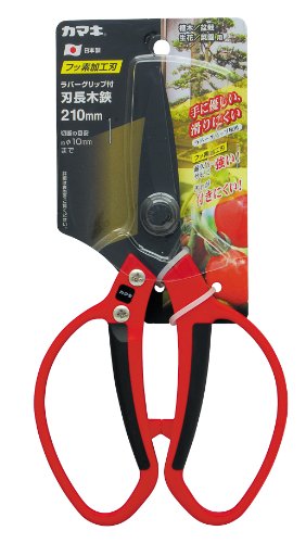 ●手に優しい・滑りにくいラバーグリップ使用●サビに強く汚れが付きにくいフッ素加工刃●植木・盆栽・生花・菜園用●切断の目安:約φ10mmまで●刃部:SK-5●刃部硬度:HRC58±1●ハンドル部:グラスファイバー・ラバーグリップ●サイズ:幅117×高さ235×奥行23mm●175g