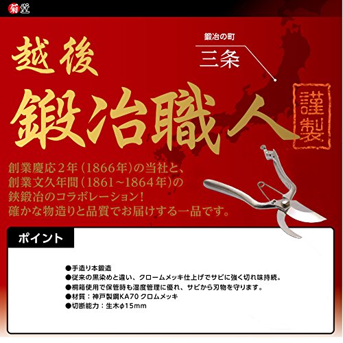 ●サビに強く、切れ味持続 クロームメッキ仕上げ●切断能力:小枝(1年目若枝)約φ15mm(刃元)●サイズ:幅92×高さ265×奥行32mm●304g