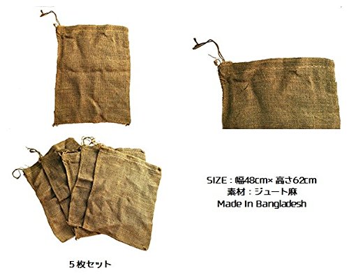 ・自然素材の麻袋で、ドンゴロス・南京袋とも呼ばれています。 ・口紐付きです。 ・通気性も良いので、園芸やガーデニングの肥料や道具の収納、収穫したジャガイモやタマネギなどの収納にも便利 ・5枚セットです。 ・SIZE:H62cm×48cm ・素材:ジュート ・Made In China ※麻袋独特のにおいがする場合があります。 ※商品の特性上、ネップ・織りキズや不純物の混入がある場合があります。 ※廃棄等につきましては、各自治体の指導に従って下さい。