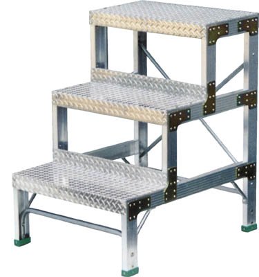 - ●階段タイプ作業台の普及品です。●完成品のためガッチリした構造でガタつきもありません。●天板が縞板のため滑り止め効果が高いです。