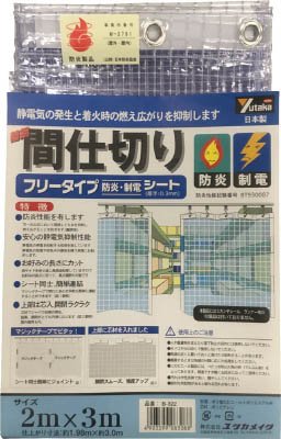 ユタカ シート 簡易間仕切り防炎・制電 2m×3m クリア B322