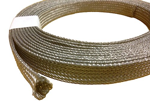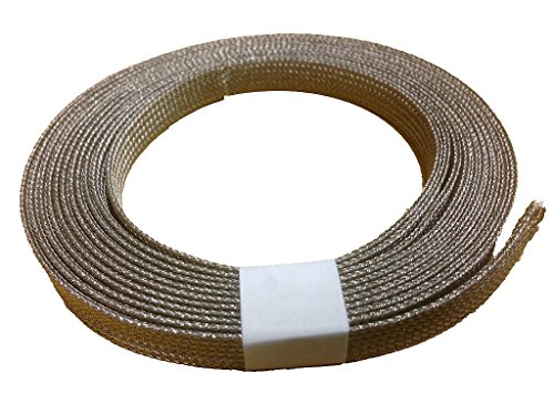 この編組チューブは、ポリエステル長繊維に錫メッキ箔を巻いた特殊繊維を原料として、弊社編組機器にて編み込んだ製品です。