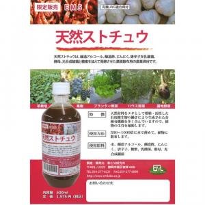 天然ストチュウは、醸造アルコール、醸造酢、にんにく、唐辛子、乳酸菌、酵母、光合成細菌と糖蜜を加えて発酵させた葉面散布用の農業資材です。500~1000倍に薄めて散布して下さい、有機酸を多く含んでいますので、植物の生育を補助し、病害虫の予防、モグラやネズミを寄せ付けません。