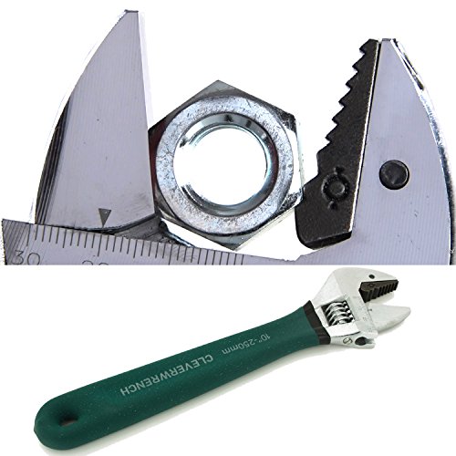 クレバーレンチ」はモンキーレンチと同様、対象のボルトやナットのサイズに合わせて口径を調節して使用するのだが、従来品と違うのは、固定ジョー(上あご)部分に斜めに付けられた歯形。 この斜めの歯形のおかげで、サイズ調整が簡単になっている上、角形のボルトでも丸形のナットでもOK! ほかにもパイプや管状物などにも使え、1本でどんな作業も一通り対応してくれるのだ。 十字溝がつぶれた丸形ネジや折れたボルトも掴んで回せ、錆びたナットを緩めることも可能だ。 また本来、スパナでボルトを回す時はいちいちはめ直して角度を変える必要があるが、クレバーレンチは狭い場所でもそのまま回すことができる。 従来のモンキーレンチやスパナでは作業しづらかった場所や、円形ねじ・角型ねじ・特殊ねじもスムーズに取り外せます。また、ねじだけでなく、折れてしまったボルト・ナット・円形のパイプなどにも対応できます。 「1本で様々なサイズに対応した工具がほしい!」という方は、サイズ調節できるモンキーレンチをお選びになるでしょう。クレバーレンチは、購入できる従来のスパナやモンキーレンチに勝る多様性を兼ね備えた工具です。まず、連続作業が可能なラチェット機能付きです。狭い場所でも作業が可能な先端部分・滑りにくいソフトグリップで安全面にも配慮しており、特殊ねじや頭が丸い丸形ねじでも回すことができます。クレバーレンチが1本あれば、なめてしまったボルト・ビス・ねじも対処できます。 回らないボルトでお困りの皆様に1本で何役もこなす多機能レンチ“クレバーレンチ”をおすすめしています。