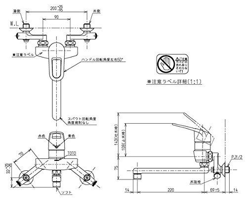 台所用混合栓 標準 366×244×128mm  TOTO