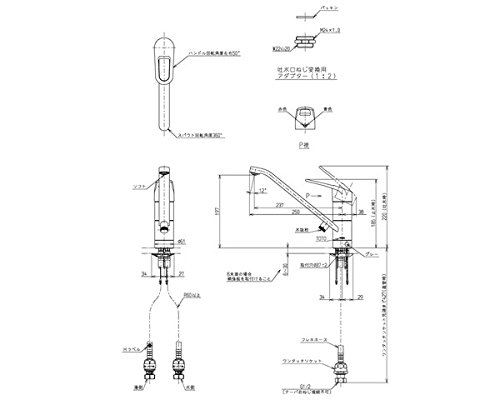台所用混合栓 1穴 寒冷地用366×366×90  TOTO