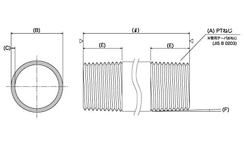 リョウナガパイプニップル 表面処理(ドブ(溶融亜鉛鍍金)(高耐食) ) 規格(20AX175L) 入数(1) 【両長パイプニップル 尾川パイプ製シリーズ】
