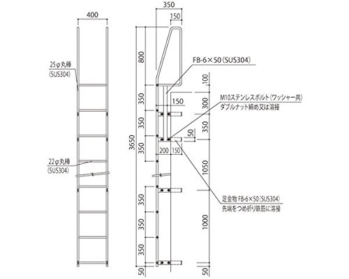 塔屋タラップ 安全ガード無本体 ステップ:9段 SK-832-2  新協和
