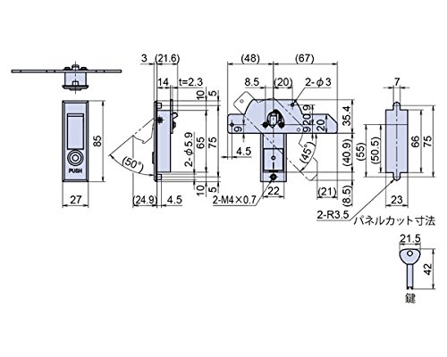 PH-27N-3 平面ハンドル 鍵付 小 1個 ジョープリンス竹下