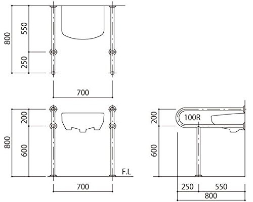 バリアフリー手摺 洗面・手洗器用標準取付タイプ(B・D・G) SK-259S 新協和