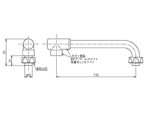 自在パイプ L=170THY243A  TOTO