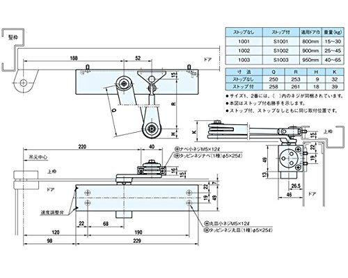リョービ ドアクローザー スタンダード ストップ付 シルバー S1001 適用ドア800x1800mm