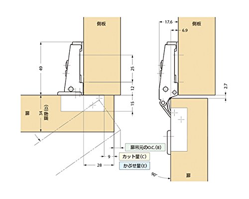 ランプ印100シリーズスライド丁番 H90-34/28 スガツネ工業