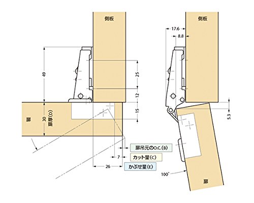 ランプ印100シリーズスライド丁番 H100-34/26 スガツネ工業