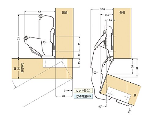 ランプ印100シリーズスライド丁番 H160-34/28 スガツネ工業