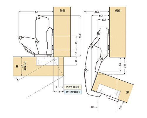 ランプ印100シリーズスライド丁番 H160-34/18 スガツネ工業
