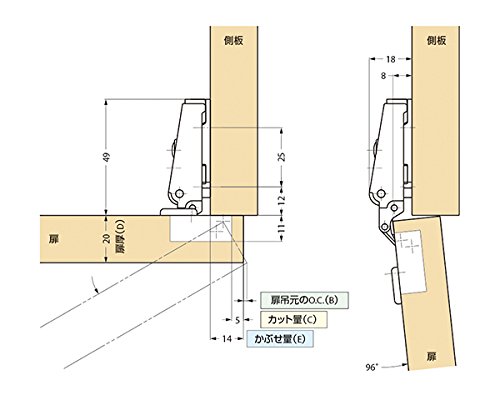 ランプ印100シリーズスライド丁番M100-C34/14 スガツネ工業