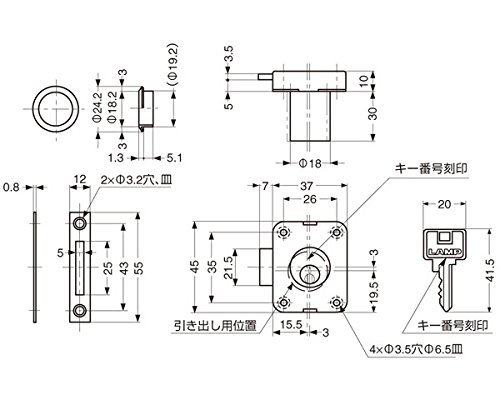 ランプ印面付シリンダー錠 3310-30-D  スガツネ工業