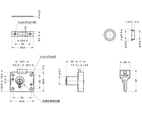 ランプ印面付シリンダー錠 2650-22-DN-D スガツネ工業