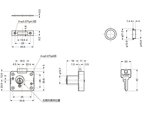 ランプ印面付シリンダー錠 2650-16-DN-B スガツネ工業