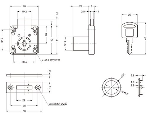 ランプ印面付シリンダー錠 507-1--D  スガツネ工業