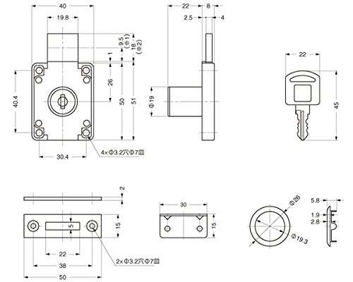 ランプ印面付シリンダー錠 508-22-D  スガツネ工業