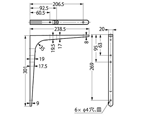 ランプ印鋼製棚受BTK-300B  スガツネ工業