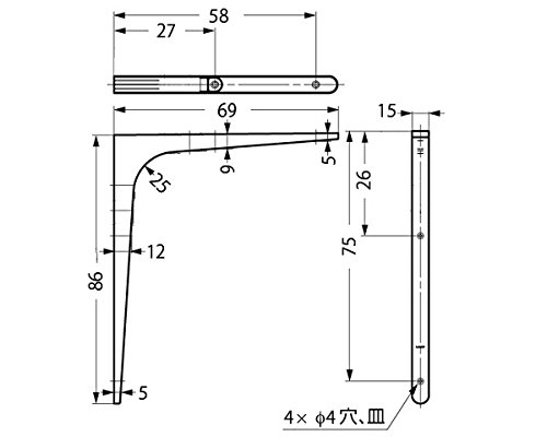 ランプ印鋼製棚受BTK-85UM  スガツネ工業