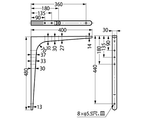 ランプ印鋼製棚受BTK-480UM  スガツネ工業