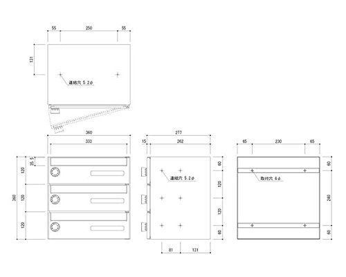 郵便受箱前入前出型 大型ダイヤル錠式戸数:3戸用 SMP-35-3FF 新協和