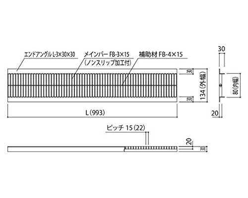 グレーチング(U字溝用・ノンスリップ型) ピッチ15 SK-GTN-1H 新協和