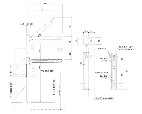 バルコニー物干金物 縦収納・ポール型ダークブロンズ SK-660TSLP-BC 新協和
