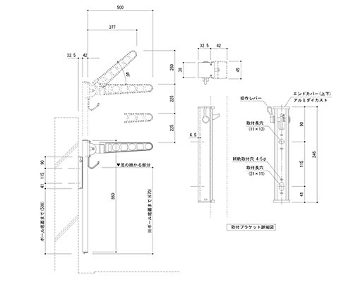 バルコニー物干金物 横収納・ポール型ダークブロンズ SK-500YSLP-BC 新協和