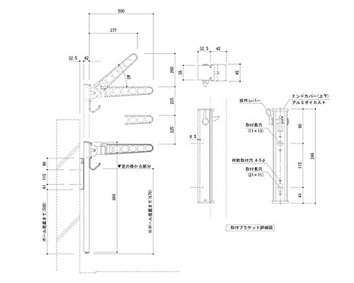バルコニー物干金物 横収納・ポール型ステンカラー SK-500YSLP-SC 新協和
