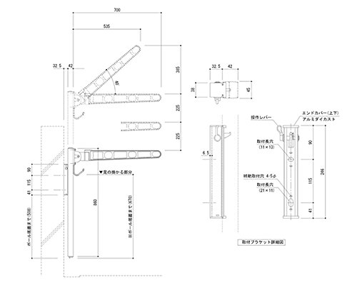 バルコニー物干金物 横収納・ポール型ホワイトクリーム SK-700YSLP-WC 新協和