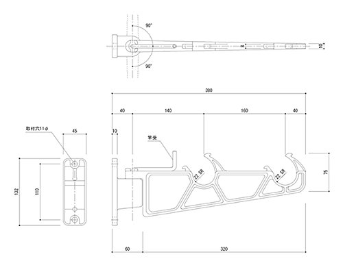 バルコニー物干金物 縦型ブラケットタイプ横収納型ダークブロンズ SK-380B-BC 新協和
