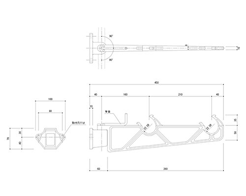 バルコニー物干金物 横型ブラケットタイプ横収納型ホワイトクリーム SK-450A-WC 新協和