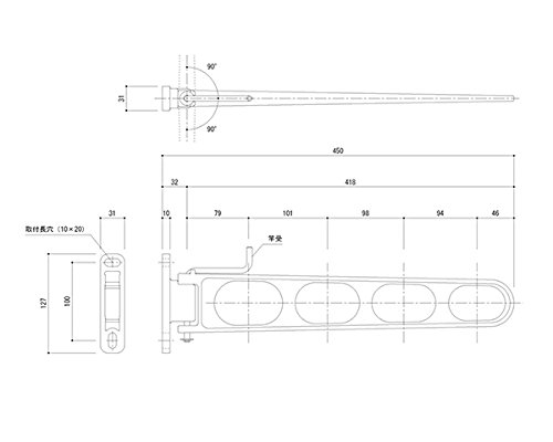 バルコニー物干金物 縦型ブラケットタイプ横収納型ホワイトクリーム SK-45LSB-WC 新協和